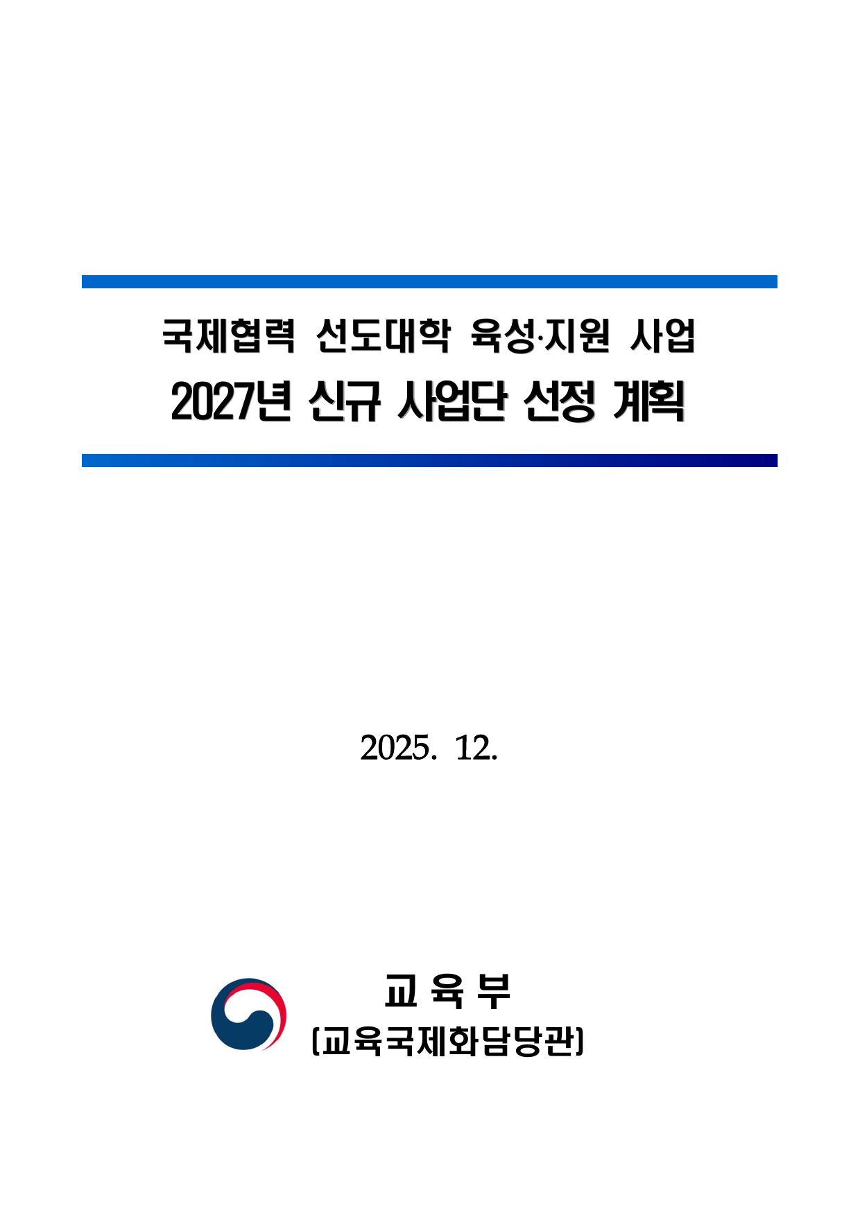 붙임1. 2027년 국제협력 선도대학 육성지원 사업 신규 사업단 선정 계획.pdf